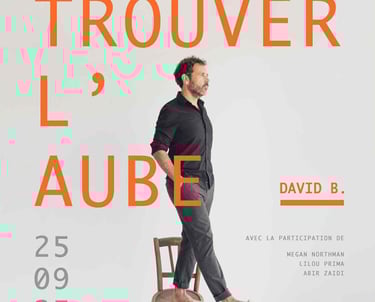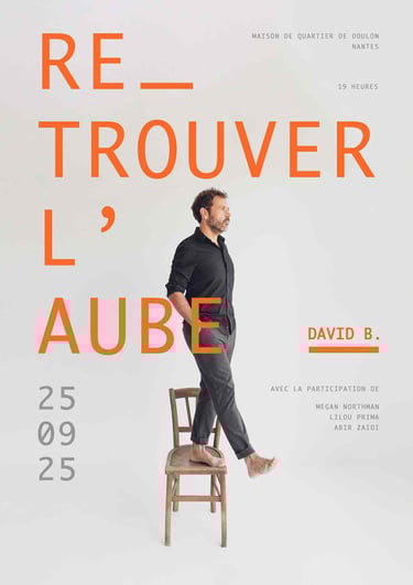 Retrouver l’aube est un OPNI, Objet Poétique Non Identifié. La poésie de David B. est difficilement définissable, mais pour autant très accessible. Tantôt suspendue, tantôt engagée, son écriture traduit sa présence sensible au monde. Elle est soutenue par une mise en scène intimiste et dynamique qui intégre une de nos choristes Abir ZAIDI.