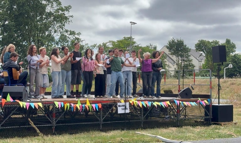 Le projet a été initié par Nadia, enseignante au lycée la Colinière et choriste, qui a été soutenue par quelques membres de la chorale pour préparer et accompagner les élèves. Ensemble, ils ont chanté en arabe et vécu une expérience musicale riche et interculturelle, tout en mettant en lumière la dimension de partage et de transmission qui anime notre chorale.